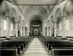 The first Mass took place in the basement of the incomplete structure at 8:00 a.m. on December 8, 1912, and the building, though not completed until 1917, was dedicated to Our Lady of the Most Holy Rosary in June 1913.