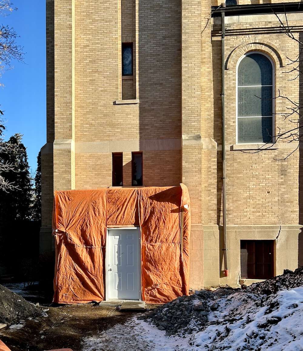 The renewal: The crumbling south stair of the cathedral will be removed and rebuilt. As a result, the damage to the foundation, bricks and stone masonry caused by the uneven settlement will be corrected. Cold air will no longer plague that stairway in winter, or cause frozen water pipes. The rebuilt stairwell will also provide one of the safety exits from the church required by the building code.
